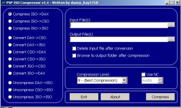 danny_kay1710 обновил свой ISO Compressor для PSP до версии 1.4. Основным нововведением стала поддержка нового формата для сжатия ISO - формата JSO. Согласно некоторым данным, новый формат сжатия считывается немного быстрее и не требует много времени для декомпрессии.